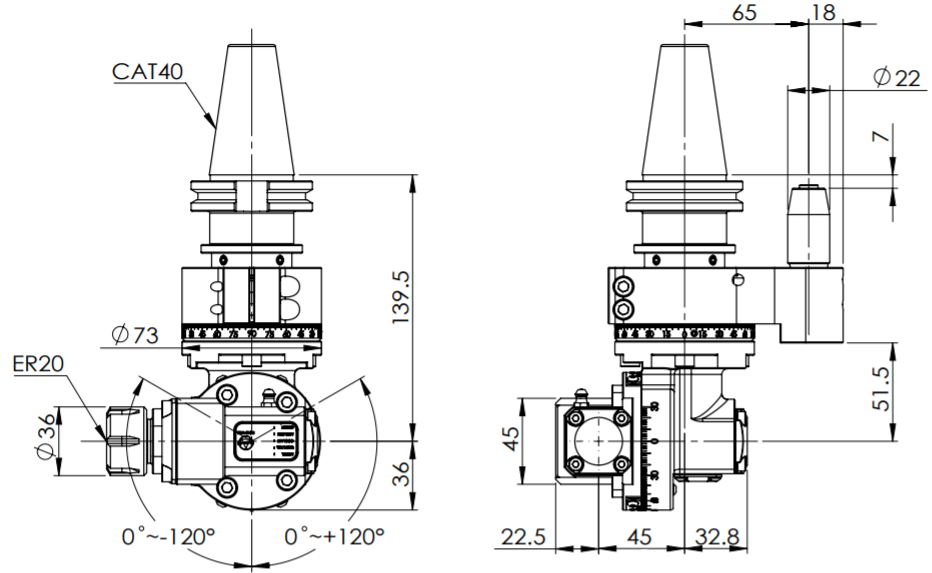 ◎ CAT40-ER20?Light Angle Head-Universal (AHL Type)