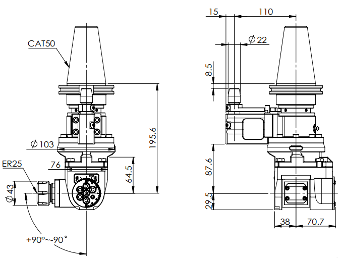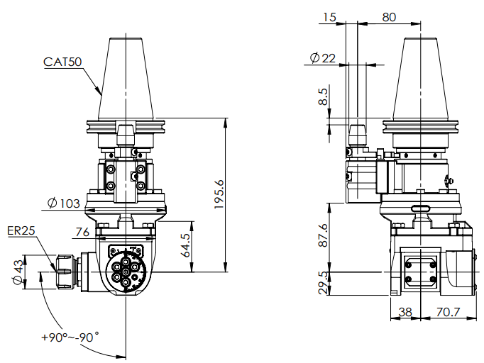 ◎ CAT50-ER25 Universal Angle Head (AHG Type)