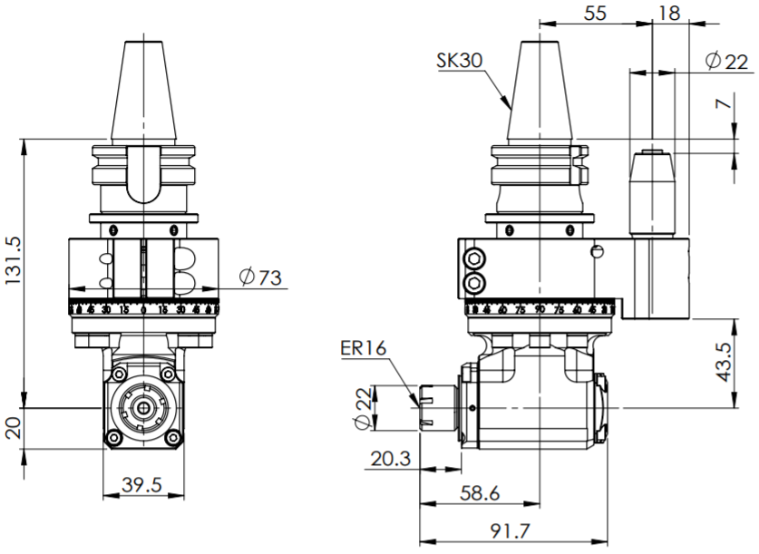 ◎ SK30-ER16 Light Angle Head (AHL Type)