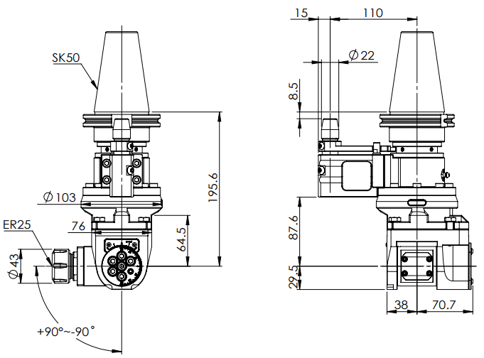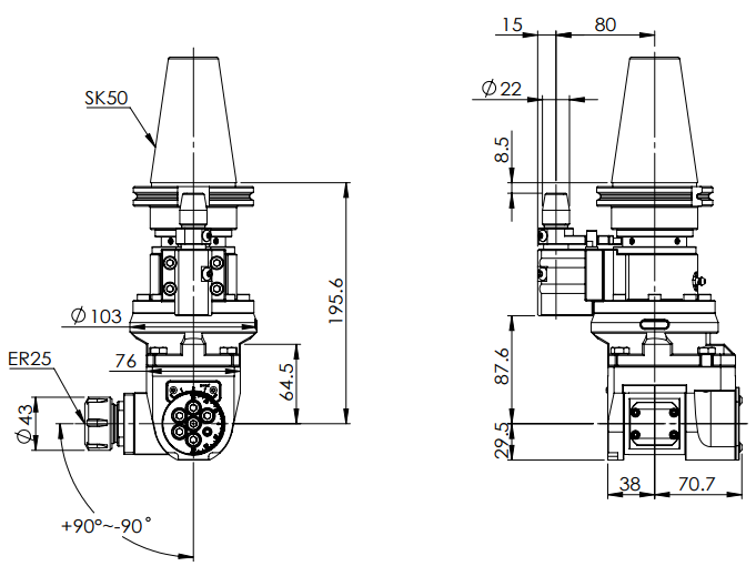 ◎ SK50-ER25 Universal Angle Head (AHG Type)